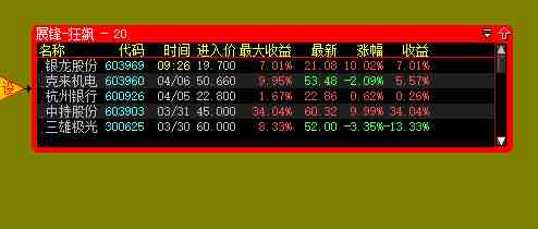 一路狂飆3月31日45元預警的603903中持股份今天繼續(xù)漲停板,如果漲停板不開的話,個人建議繼續(xù)持有,次日如果不能再度漲停,再考慮高拋獲利了結,該股短線收益已經(jīng)高達34%。此外,昨天加料股002846英聯(lián)股份前市表現(xiàn)不錯,由于昨日買入價46.55元,所以今天有3元以上獲利時我建議高拋了,今天加料股已經(jīng)跌破第一個低吸點,希望午后第二個低吸點可以拿到相應倉位!另外,今天一路狂飆9:27貼圖的603969銀龍股份封于漲停板,看來運氣來了的時候,真是擋也擋不住,恭喜所有買入的朋友!