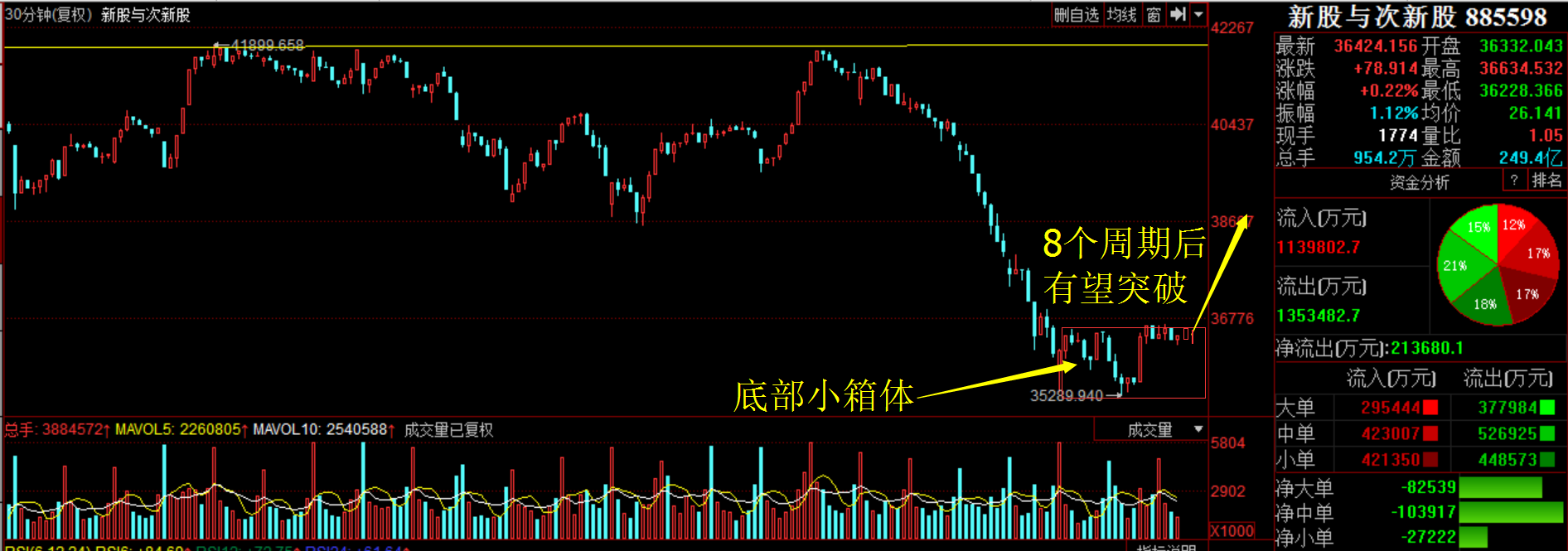 雄安新區(qū)代表權(quán)重題材,次新股代表中小題材,今日雄安新區(qū)表現(xiàn)強(qiáng)勢,次新股表現(xiàn)火候還有所欠缺。午后仍然可以重點(diǎn)關(guān)注次新板塊的走勢,目前次新股板塊仍然處于底部磨底階段,次新板塊在短期大跌后,超跌反彈幅度還是較弱,仍然可以重點(diǎn)關(guān)注錯殺次新股的表現(xiàn)機(jī)會。反彈想要延續(xù),需要題材這個時候站出來,雄安已經(jīng)站出來了,市場節(jié)奏何時切換到次新股,表明賺錢行情真正到來。