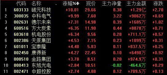 石墨烯今天雖然沒有成為兩市的領(lǐng)漲板塊,但其板塊效應(yīng)是今天所有板塊中最強(qiáng)的。碳元科技、中科電氣強(qiáng)勢漲停,德爾未來暴漲7%,方大炭素、杭電股份均大漲6%以上,天原集團(tuán)、寶泰隆、康得新、金路集團(tuán)等個(gè)股亦有不同程度的上漲。