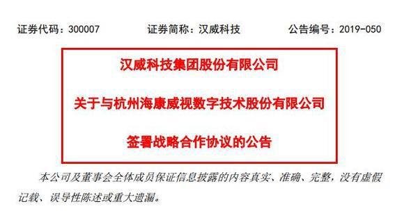 9月18日,【漢威科技(300007)、股吧】集團(tuán)股份有限公司(證券簡(jiǎn)稱:漢威科技證券代碼:300007)發(fā)布了《關(guān)于與杭州??低晹?shù)字技術(shù)股份有限公司簽署戰(zhàn)略合作協(xié)議》的公告。