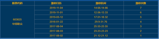 近一年來華揚聯(lián)眾漲停4次,下圖是其過往歷史漲停情況: