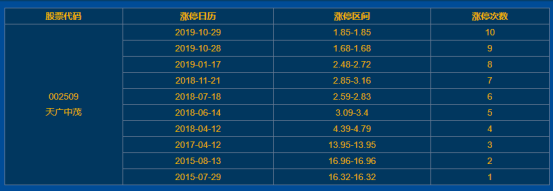 近一年來天廣中茂漲停5次,下圖是其過往歷史漲停情況: