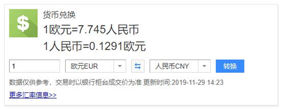 如下圖所示:根據(jù)最新的貨幣兌換,1歐元可以兌換7.745人民幣。