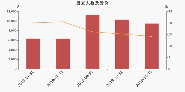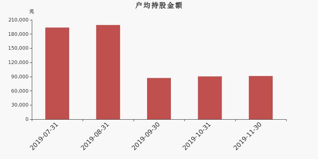 截至2019年11月30日,公司最新總股本為1.26億股,其中流通股本為6120.1萬股。戶均持有流通股數(shù)量由上期的5946股上升至6451股,戶均流通市值9.13萬元。