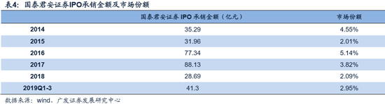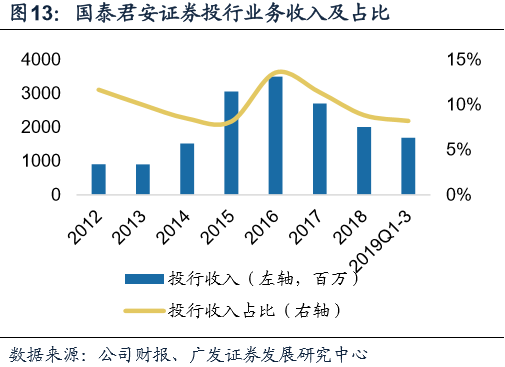 據(jù)公司半年報,國泰君安著力于提升投行專業(yè)化能力。已有的舉措包括:1)加大對重點(diǎn)產(chǎn)業(yè)龍頭企業(yè)的覆蓋,加強(qiáng)對新經(jīng)濟(jì)企業(yè)和傳統(tǒng)優(yōu)質(zhì)企業(yè)的開發(fā)力度,把握科創(chuàng)板機(jī)遇;2)加大IPO業(yè)務(wù)投入,加強(qiáng)對重點(diǎn)區(qū)域和重點(diǎn)行業(yè)的覆蓋,以不斷提升獲客能力;3)債券承銷業(yè)務(wù)抓住高等級公司債、金融債和地方政府債機(jī)遇,承銷規(guī)??焖僭鲩L;4)平穩(wěn)推進(jìn)并購重組和新三板業(yè)務(wù),有望借再融資松綁再進(jìn)一步。