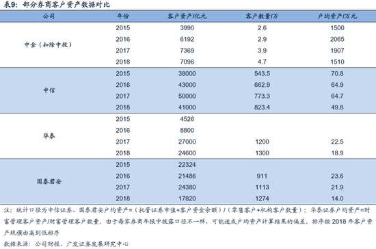 對照而言,國泰君安的業(yè)務(wù)現(xiàn)狀均具備一定優(yōu)勢:1)公司作為老牌券商,客戶結(jié)構(gòu)較好,高凈值客戶數(shù)量較多,借助創(chuàng)新業(yè)務(wù)與海外業(yè)務(wù)的先發(fā)優(yōu)勢,進(jìn)一步拓展高凈值客戶群體;2)線上平臺與線下網(wǎng)點(diǎn)的共同推進(jìn),為公司構(gòu)筑了完善的渠道網(wǎng)絡(luò),2018年末,君弘 APP 用戶超過 3,000 萬戶、較上年末增長 36.9%,月活躍度排名行業(yè)第 2 位;3)金融產(chǎn)品體系豐富全面,產(chǎn)品銷售和配置能力穩(wěn)步提升,已經(jīng)打造了一個相對較全面的產(chǎn)品庫,包括現(xiàn)金、固收、權(quán)益、量化、QDII等各主要類型,同時整理了20多項(xiàng)產(chǎn)品專項(xiàng)服務(wù),打造了公司級的“產(chǎn)品中心”進(jìn)行系統(tǒng)化管理,初步構(gòu)筑了國泰君安的金融產(chǎn)品體系。