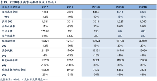 經(jīng)紀(jì):相較于2019年初以來修復(fù)估值帶來的市場熱度,預(yù)計2020年成交金額同比保持增長,傭金率維持小幅下降趨勢。貨幣政策寬松預(yù)期及整體政策回暖背景下,2020年市場換手率及場內(nèi)客戶保證金規(guī)模有望企穩(wěn)后小幅上升。