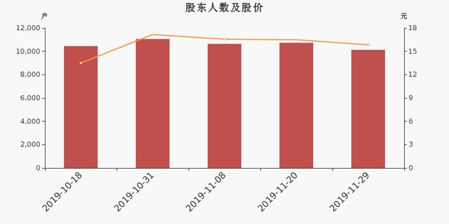 2019年10月18日至今,公司股東戶數(shù)有所下降,區(qū)間跌幅為3.10%。2019年10月18日至2019年11月29日區(qū)間股價上漲17.42%。