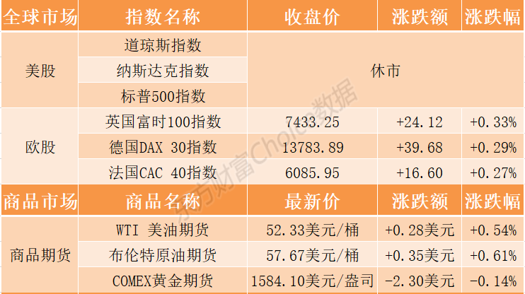 隔夜外盤:美股休市歐股集體收漲 國際油價小幅上漲