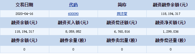 同濟(jì)堂(600090)融資融券信息(04-16)