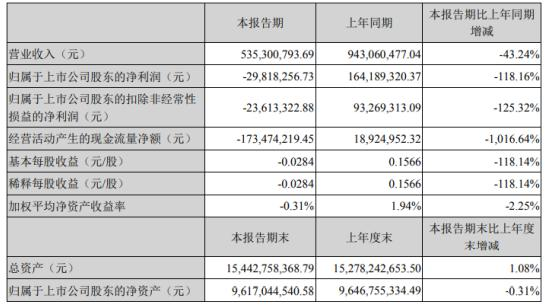 截至本報告期末,天山股份歸屬于上市公司股東的凈資產(chǎn)9,617,044,540.58元,較上年末下滑0.31%;經(jīng)營活動產(chǎn)生的現(xiàn)金流量凈額為-173,474,219.45元,上年同期為18,924,952.32元。