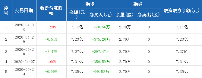 盛屯礦業(yè)融資融券交易明細(04-30)