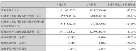 5月4日,易聯(lián)眾(300096)近日發(fā)布2020年第一季度報(bào)告,公告顯示,報(bào)告期內(nèi)實(shí)現(xiàn)營(yíng)收91,146,123.32元,同比下滑13.87%;歸屬于上市公司股東的凈利潤(rùn)-49,571,851.16元,較上年同期虧損增加。