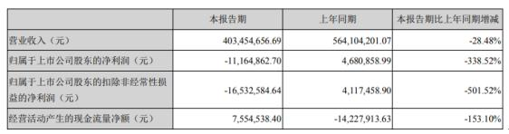 5月3日,華軟科技(002453)近日發(fā)布2020年第一季度報(bào)告,公告顯示,2020年第一季度實(shí)現(xiàn)營收403,454,656.69元,同比下滑28.48%;歸屬于上市公司股東的凈利潤-11,164,862.70元,較上年同期由盈轉(zhuǎn)虧。