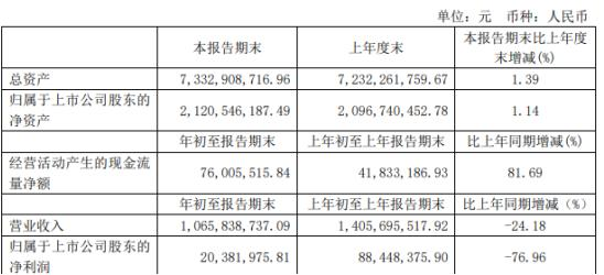 4月30日,【風(fēng)神股份(600469)、股吧】(600469)今日發(fā)布2020年第一季度報(bào)告,公告顯示,報(bào)告期內(nèi)實(shí)現(xiàn)營(yíng)收1,065,838,737.09元,同比下滑24.18%;歸屬于上市公司股東的凈利潤(rùn)20,381,975.81元,同比下滑76.96%。