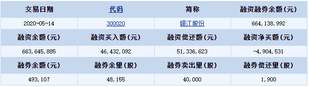 銀江股份(300020)融資融券信息(05-14)