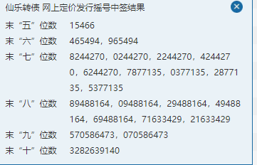 仙樂發(fā)債中簽號出來之后,小編將在這里第一時(shí)間進(jìn)行更新,如果沒有更新,可聯(lián)系贏家財(cái)富網(wǎng)QQ:100800360