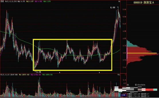 如果建倉(cāng)時(shí)的籌碼和之后追加時(shí)的籌碼數(shù)量差別不大的話,那么莊家的持倉(cāng)的平均成本價(jià)基本上就是箱體的中間價(jià),因此在這類操作中莊家的成本價(jià)很好把握,當(dāng)散戶知道了這個(gè)莊家常用的手段,接下來(lái)如何應(yīng)對(duì)就會(huì)得心應(yīng)手了。