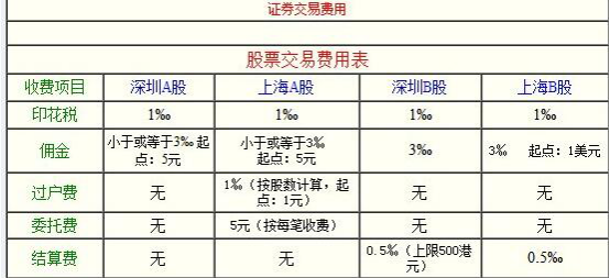 3 、證券交易手續(xù)費(fèi):A股是根據(jù)0.00487%的成交金額收取的,同樣是是雙向收??;B股是按0.00487%的成交金額收取,也是雙向收取,在基金方面,兩個(gè)證券交易所的收取費(fèi)用不同,上海證券交易所收取0.0045%,而深圳證券交易所收取0.00487%。