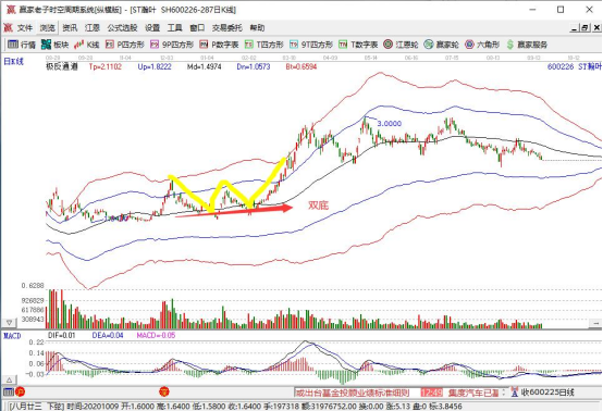 根本原因主要在于雙底形態(tài)本身的可變性,因為形態(tài)本身就是一種幾何圖形,它可能出現(xiàn)在股價走勢的各個階段中,是不能將它獨計出來跟理論去對照的。不論是在多重底當(dāng)中,還是在股價下降途中的震蕩箱體當(dāng)中,都有可能形成一個類似于W型的K線進行排列。這時,這種形態(tài)實際上不構(gòu)成雙底的確認(rèn)條件。