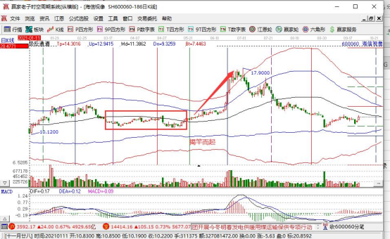 2.揭竿而起出現(xiàn)后,股價(jià)一般略有調(diào)整,多以橫盤排列的形式出現(xiàn)。強(qiáng)勢(shì)特征明顯。一旦發(fā)現(xiàn)股價(jià)再次放量上漲,馬上蓋帽搶進(jìn)。