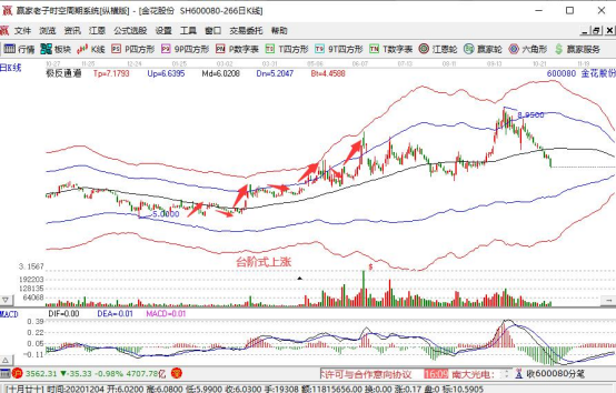 它的主要特點是股票臺階上升是橫盤盤整后每次被拉起的速度都比被拉起的速度快,每次被拉起都有大量的成交。這種情況一般是主力造成的,臺階上升在實際操作中符合這一趨勢,股票的臺階上升要根據(jù)股價所在的位置來分析。如果股票的逐步上漲發(fā)生在底部開始后不久,或者在上漲的中途,可以考慮介入。如果上漲后出現(xiàn)在高位,很可能是莊家設(shè)下的陷阱,不建議盲目跟風。此外,要注意成交量的變化股價。要在短時間內(nèi)盤整下跌是縮量的,而在上漲時一定要放量上漲。