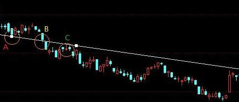 交叉線其實是趨勢線的延伸。當前期某個趨勢線被打破,會和價格曲線有一個交集。相交之后,可以認為趨勢發(fā)生了根本性的變化。這個被突破的趨勢線仍然有效,但支持和阻力的方向相反。在價格突破趨勢線后的回復(fù)中,價格將在原趨勢線附近獲得支持或阻力。