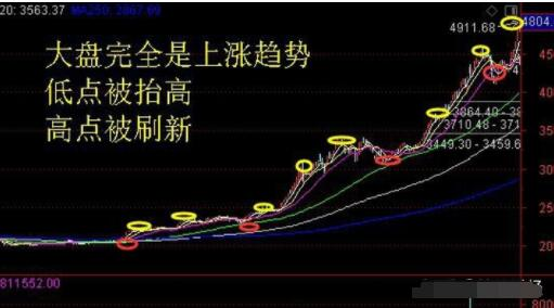 (2)市場的趨勢是向上的,只有牛市才會向上。比如連接每一輪調(diào)整的低點和每一輪引體向上的高點。只要這兩條線上漲,就證明市場在走牛市。