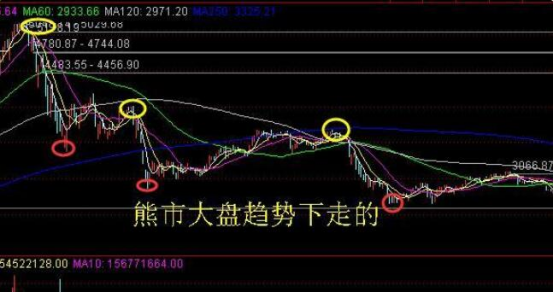 (2)如果市場走勢都呈現(xiàn)下跌趨勢,殺跌低點越來越低。反彈高點越來越低,整體指數(shù)在下跌。這就是是熊市市場。