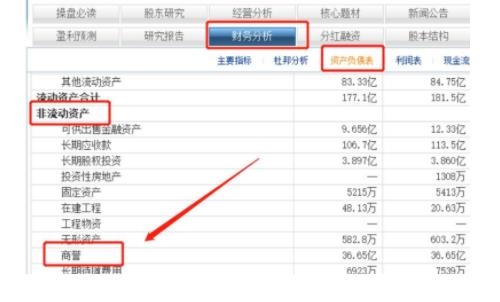 3.之后,找到報(bào)告中“商譽(yù)”的那一行,顯示出的價(jià)值就是上市公司商譽(yù)的估計(jì)價(jià)值;