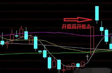 3.高開。通常在高開之后蜂擁而上,如果第二波不能漲停,它可以在短期內(nèi)賣出;一旦形成長影k線,收盤前應(yīng)先收盤;如果高開后立即回?fù)?,可能是主力出逃或者洗盤關(guān)鍵看股價能否在回?fù)芟聛砗蟀胄r內(nèi)被拉再次拉回開盤點,否則就會出局。