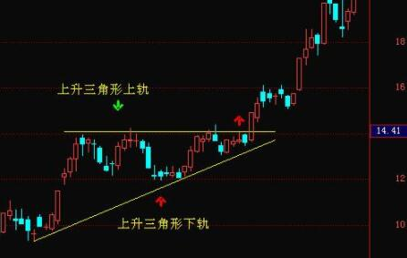 上升三角是因為股價每次漲到一定價位都會遇到拋售壓力,意圖將籌碼從散戶手里洗出來,莊家在一定低位抓住。在這種情況下,股價開始反彈,但沒有跌到最后的低點,低點一直在上升。