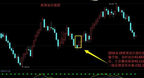 該股大幅下跌后,收出一根長下影線的小陰線,與前一交易日有0.20元的差距,形成標(biāo)準(zhǔn)的“重錘落地”形態(tài);表明股票已經(jīng)跌到谷底,后市即將開啟反彈行情。