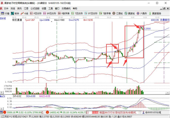 2.個(gè)股日線圖上的4日移動(dòng)平均線、10日移動(dòng)平均線、20日移動(dòng)平均線從向下運(yùn)行角度變?yōu)樽咂綘顟B(tài),并且開始轉(zhuǎn)頭向上;