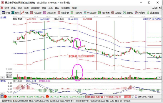 此外,當(dāng)市場(chǎng)表現(xiàn)不佳或個(gè)股盤中出現(xiàn)重大利空消息時(shí),市場(chǎng)投資者會(huì)因?yàn)榭只哦鴮⑹种写罅抗善睊伋?。?dǎo)致個(gè)股出現(xiàn)高開后放量急跌的現(xiàn)象。