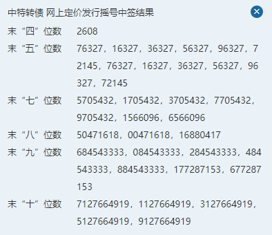 中特轉債中簽號將于2022年3月1日晚間公布,屆時大家可以來本站查看。免費咨詢學習股票可轉債技巧加QQ號:100800360,以上就是關于中特轉債中簽號的全部內容,希望能對你所有幫助,也希望你能多多中簽,多多賺錢。