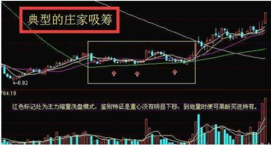 為了在一天的交易中獲得盡可能多的低籌碼,主力通常會(huì)控制開(kāi)盤價(jià),讓該股低開(kāi)。另一方面,當(dāng)日主力的積極買入必然會(huì)推高股價(jià),以至于收盤時(shí)k線圖上往往會(huì)留下一根紅色的陽(yáng)線。在整個(gè)融資階段,k線圖基本以陽(yáng)線為主,夾雜少量綠色陰線。