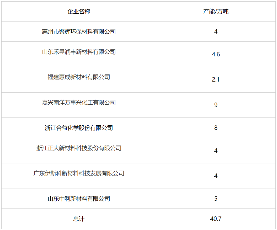 甲基四氫苯酐產(chǎn)品2023年新建產(chǎn)能已經(jīng)超過40萬噸,大部分項目都將這兩年內(nèi)集中釋放,以下是預(yù)計近兩年將投產(chǎn)的項目: