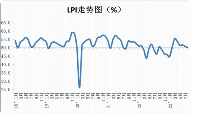 央視網(wǎng)消息:據(jù)中國物流與采購聯(lián)合會(huì),2023年8月份中國物流業(yè)景氣指數(shù)為50.3%,較上月回落0.6個(gè)百分點(diǎn);中國倉儲(chǔ)業(yè)指數(shù)為52%,較上月下降0.2個(gè)百分點(diǎn)。