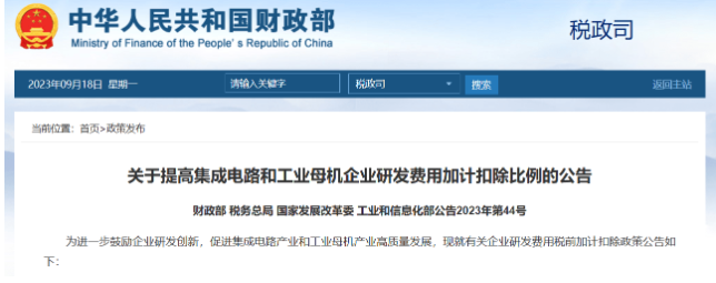 T之家 9 月 18 日消息,財(cái)政部、稅務(wù)總局、國家發(fā)展改革委、工業(yè)和信息化部今日聯(lián)合發(fā)布關(guān)于提高集成電路和工業(yè)母機(jī)企業(yè)研發(fā)費(fèi)用加計(jì)扣除比例的公告,進(jìn)一步鼓勵(lì)企業(yè)研發(fā)創(chuàng)新,促進(jìn)集成電路產(chǎn)業(yè)和工業(yè)母機(jī)產(chǎn)業(yè)高質(zhì)量發(fā)展。