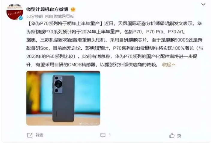 曝華為P70系列將搭載麒麟處理器,預(yù)計(jì)2024年上半年量產(chǎn)