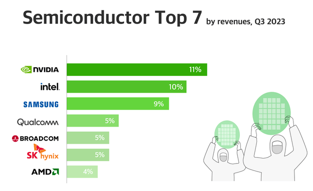 根據(jù)市場研究機構(gòu)Counterpoint Research的最新數(shù)據(jù),全球半導體收入排行榜中,排名第一的是英偉達。這一結(jié)果是由于科技巨頭對人工智能服務(wù)器的需求強勁,預計在未來幾個季度,英偉達將繼續(xù)在半導體收入方面保持主導地位。