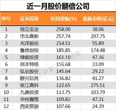 雖說10月19日開始反彈,但是至今滬指累計漲幅僅為6.41%,不過在此期間股價翻倍的卻有12只(剔除近一月上市新股),是年內(nèi)股價翻倍個股(僅有6只)的2倍。