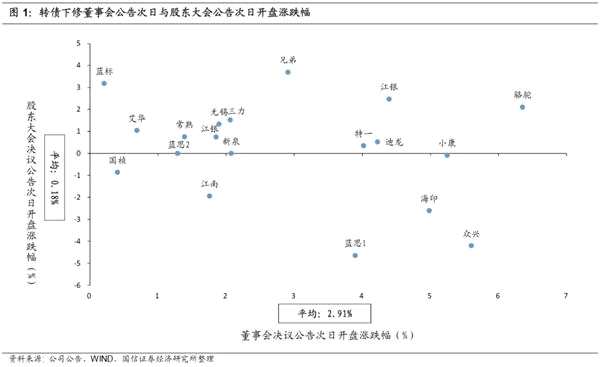 從絕對(duì)收益來看,今年下修標(biāo)的在董事會(huì)決議公告次日開盤均收獲上漲,相對(duì)前一日收盤的漲幅最高為駱駝的6.35%,最低為藍(lán)標(biāo)的0.21%,平均2.91%,其中超預(yù)期下修的幾只轉(zhuǎn)債漲幅都較為可觀,例如江銀、迪龍、眾興、海印、小康,漲幅均在4至5個(gè)百分點(diǎn)。股東大會(huì)決議公告次日開盤則漲跌不一,最高為兄弟的3.7%,最低為藍(lán)思(第一次)的 -4.65%,平均0.18%。相比股東大會(huì)日,董事會(huì)公告前后的下修博弈空間更加充分。
