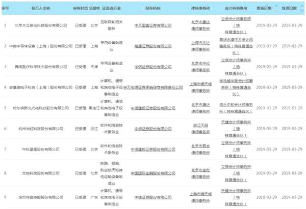 3月29日,上交所披露新受理科創(chuàng)板上市企業(yè)名單,截至發(fā)稿共9家,分別為深圳傳音控股股份有限公司、賽諾醫(yī)療科學(xué)技術(shù)股份有限公司、安集微電子科技(上海)股份有限公司、哈爾濱新光光電科技股份有限公司、杭州當(dāng)虹科技股份有限公司、中科星圖股份有限公司、交控科技股份有限公司、北京木瓜移動(dòng)科技股份有限公司、中微半導(dǎo)體設(shè)備(上海)股份有限公司。