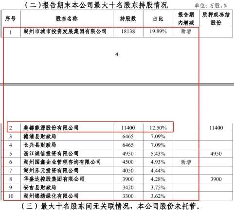 根據(jù)湖州銀行在中國貨幣網(wǎng)的公示年報(bào),美都能源為該行第二大股東,持有1.14億股、占比12.5%;該行實(shí)控人為湖州市政府,第一大股東為湖州市城投(持股占比19.89%)。
