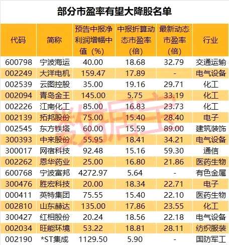 上述3只股票中有2只是市盈率“由負轉(zhuǎn)至個位數(shù)”。此外,大洋電機也是類似情況,其一季度凈利潤虧損,公司預(yù)計上半年實現(xiàn)凈利潤2.6億元至3.15億元,半年報后市盈率有望“降”至18倍左右。