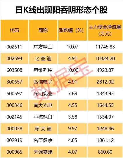 【東方精工(002611)、股吧】等股出現(xiàn)陽吞陰形態(tài)