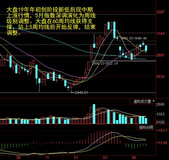 大盤(pán)18年10月份政策利好頻出開(kāi)始構(gòu)筑階段底部。19年1月份刷新階段低點(diǎn)后開(kāi)啟周線級(jí)別的上漲行情。目前,中線上漲趨勢(shì)延續(xù),但市場(chǎng)遭遇黑天鵝技術(shù)性深調(diào)演化為周線級(jí)別的調(diào)整,近幾周指數(shù)在60周均線得到支撐,站上5周均線后突破結(jié)束中期調(diào)整進(jìn)行震蕩格局。