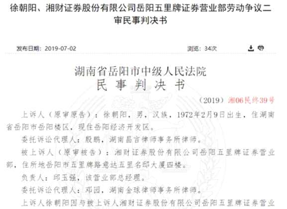 2018年3月8日,岳陽市勞動人事仲裁委員會只裁定湘財(cái)證券五里牌營業(yè)部需向徐某支付2007年4月至2008年3月差額工資1.08萬元,駁回徐某的其他仲裁請求。對此結(jié)果徐某表示不服,提起訴訟。